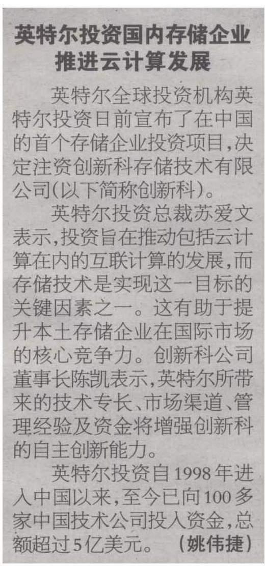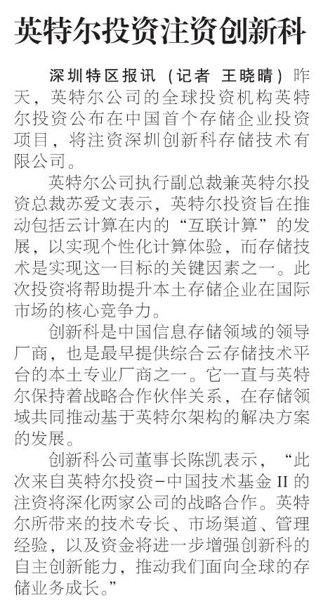 英特爾投資宣布注資創新科---發布會(huì)媒體(tǐ)報道(dào)