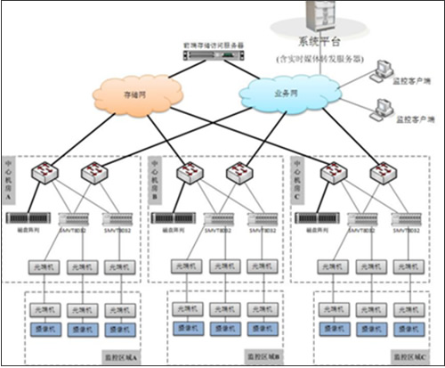 1、本系統采用了業務網和(hé)存儲網分離的設計(jì)思路,通(tōng)過流媒體(tǐ)服務器(qì)跨接雙網,既滿足了存儲網的安全穩定,又保證業務網的快速、便捷地訪問。