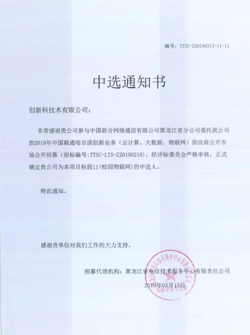 近日,2018年中國聯通(tōng)哈爾濱創新業務(雲計(jì)算(suàn)、大(dà)數(shù)據、物聯網)供應商公開(kāi)市場(chǎng)公開(kāi)招募結果塵埃落定。 UIT創新科憑借雄厚的技(jì)術(shù)實力、優秀的産品與服務能力,曆經前期申報、信息審核、技(jì)術(shù)測試、專家(jiā)評審等層層篩選後成功入選,正式成為(wèi)2018年中國聯通(tōng)哈爾濱創新業務供應商。