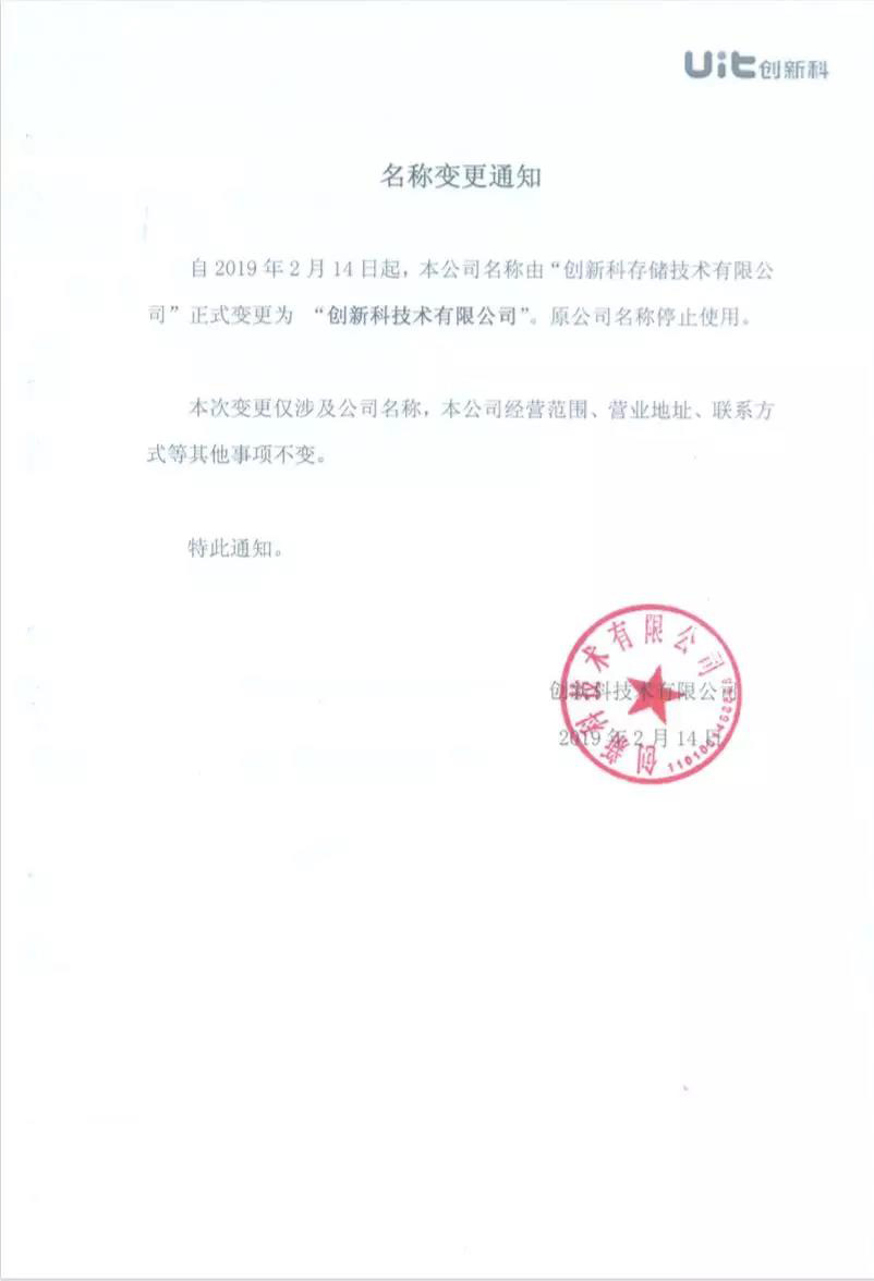 關于UIT創新科北京公司名稱變更通(tōng)知