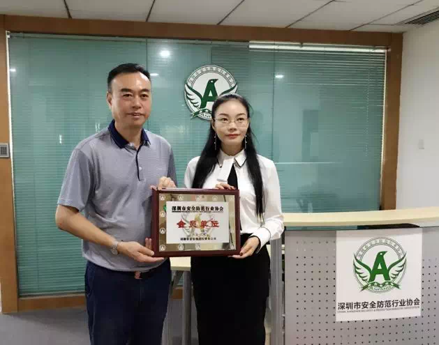 深安協秘書(shū)長王君利(左)為(wèi)肖海琴頒發會(huì)員單位牌匾和(hé)證書(shū)