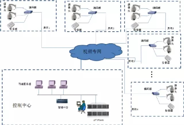 UIT根據客戶的應用環境,結合目前以及未來(lái)的需求,為(wèi)客戶設計(jì)了一套以IP SAN存儲架構為(wèi)主的集中監控存儲解決方案,方案采用SV3000G2 存儲系統。在現有(yǒu)的視(shì)頻監控系統上(shàng)進行(xíng)容量的擴展,既解決了視(shì)頻監控容量的需求,又不改變現有(yǒu)的網絡結構。