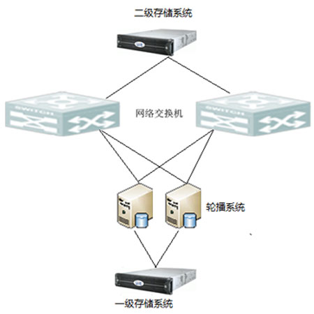 本方案為(wèi)客戶設計(jì)了一套輪播存儲系統,其拓撲示意圖如下所示: